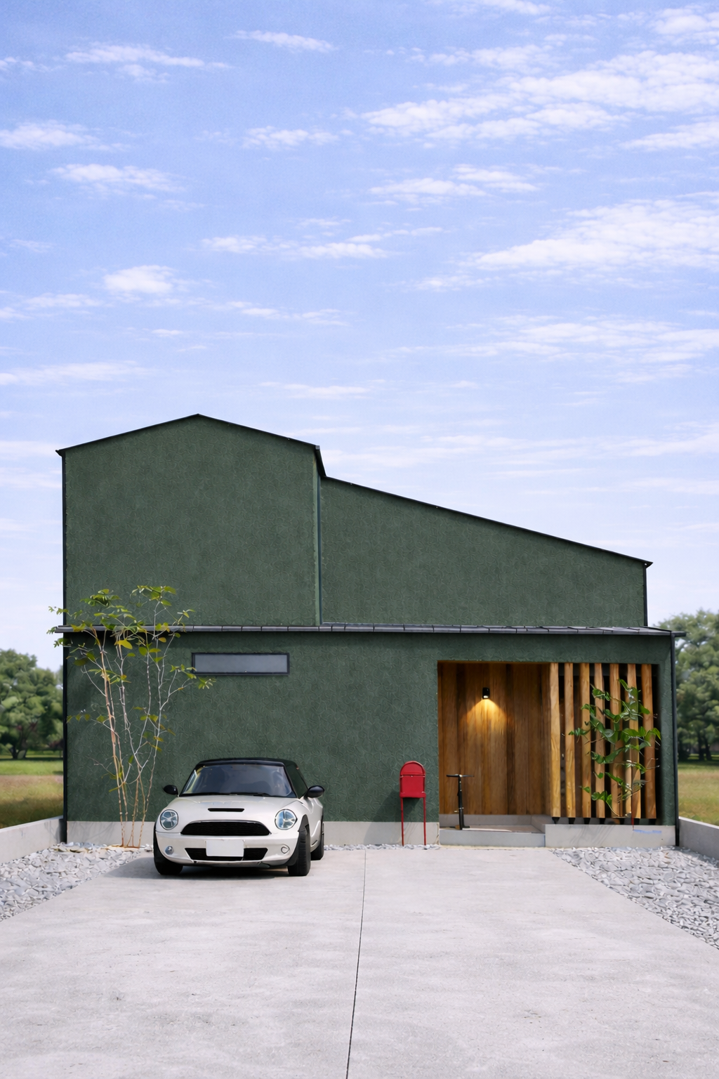 • 塗り壁外壁が際立つシンプルなファサード